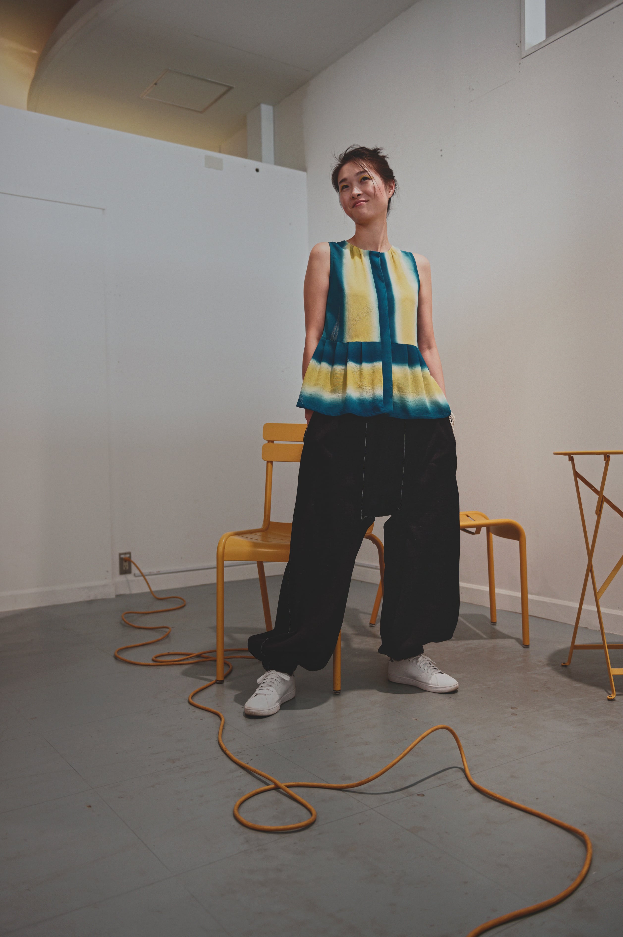 股上が深く、動きやすいシルエットです。ユニセックスで着用いただけます。
