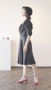 肩から袖まで1枚のパターンでドレープを作り出しています。